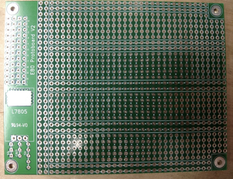 Protoboard connects to the motherboard with a right angle header and mounts above the main PCB.